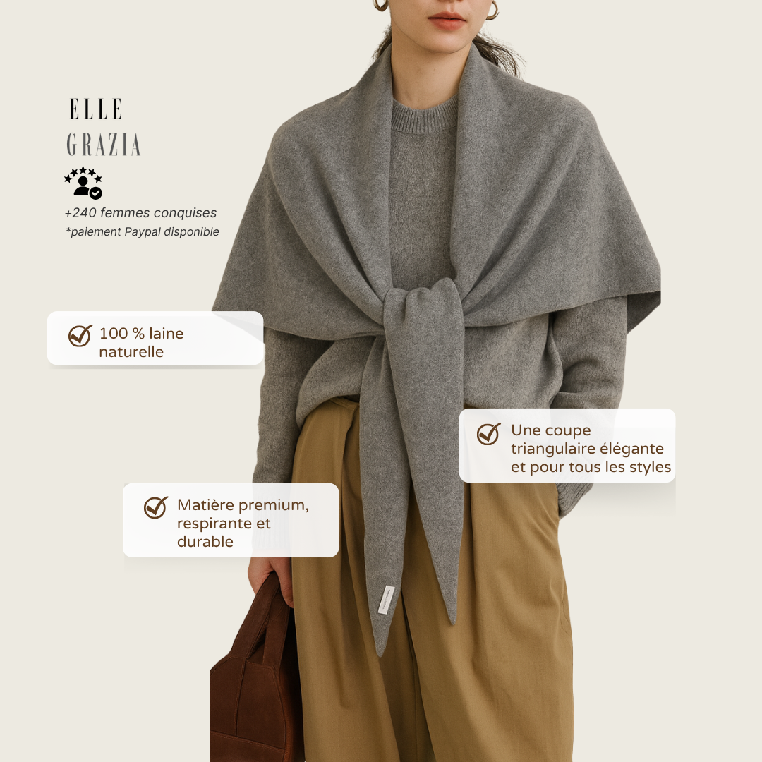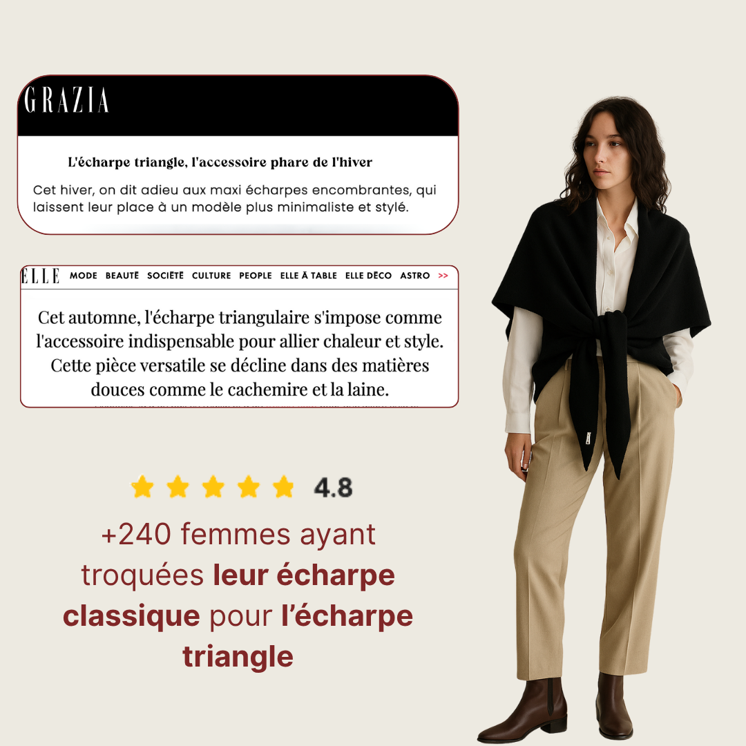 L’écharpe triangle 100% laine — douceur, chaleur et élégance.